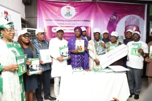 The Permanent Secretary Daju Kachollom mni; delivering the Keynote address. She represented both the Honourable Coordinating Minister and Honourable Minister of State for Health & Social Welfare during the engagement forum.